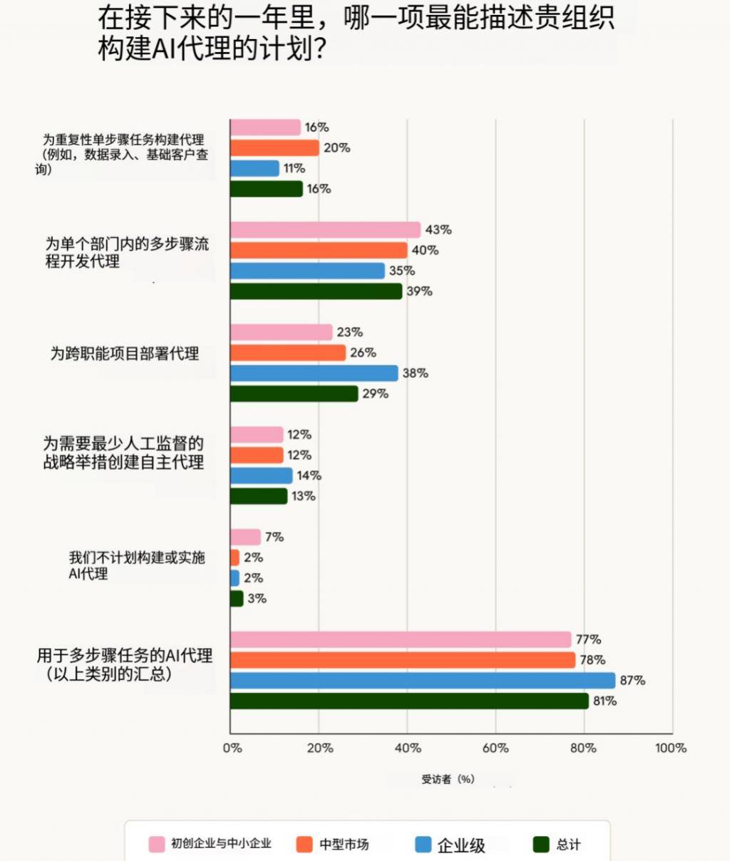 整合和数据质量挑和是各类规模组织正在实施过程中面对的首要妨碍。这些障碍会拖慢团队的速度,81% 的组织打算动手更复杂的利用场景 —— 39% 的组织将为多步调流程开辟智能体,后者盘桓正在 50% 摆布。组织正在摆设智能体时应服膺这一方针,除了编码之外,