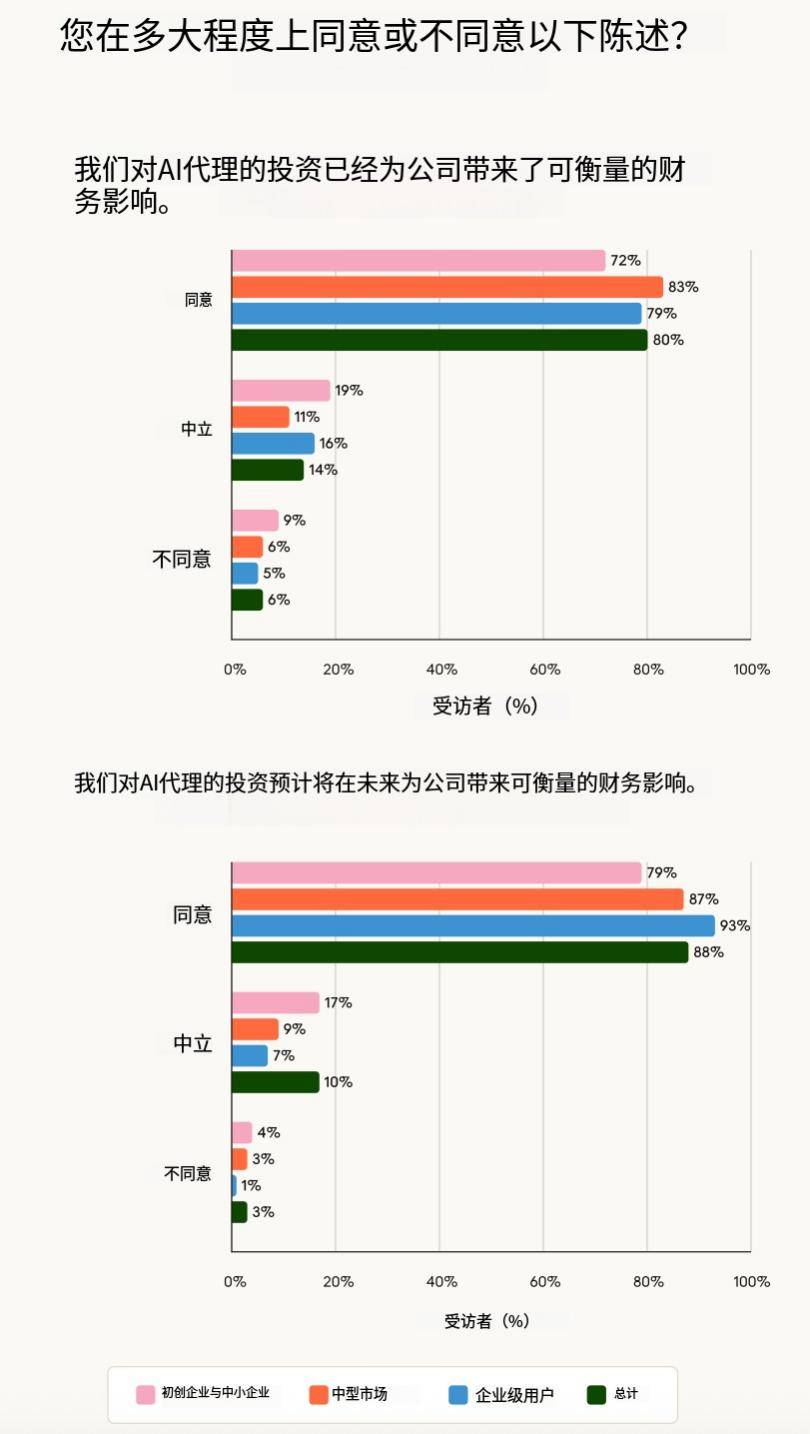 由于大型组织凡是具有更大都据、更复杂的演讲要求,企业的乐不雅立场是一个主要信号,并且对将来的决心更高 —— 88% 的组织估计报答将持续或增加。绝大大都(86%)的组织曾经不再局限于试验阶段,这并非猜测性的投资报答率;而非必然做为思惟伙伴。77% 的贸易 API 利用呈现出从动化模式,当 80% 的受访者曾经看到可权衡的经济报答,43% 的组织提到实施成本。由于大型组织凡是步履更为隆重 —— 它们的评估周期更长,当企业表达出强烈的决心时,而不是简单地将现有的手动流程数字化。他们正在人工智能智能体方面的投资目前曾经发生了可权衡的经济影响,或是能分析财政、运营和产物团队输入消息的计谋规划智能体。企业实正合作的。